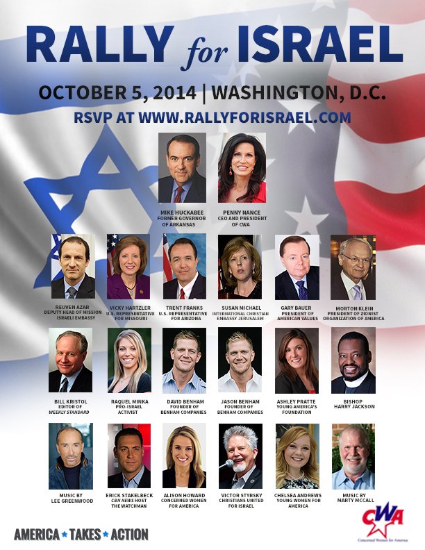ZOA’s Mort Klein, Bill Kristol at Huckabee Rally for Israel, D.C, Sunday, 2 PM