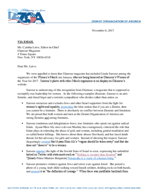 Letter to Glamour on Linda Sarsour Honor
