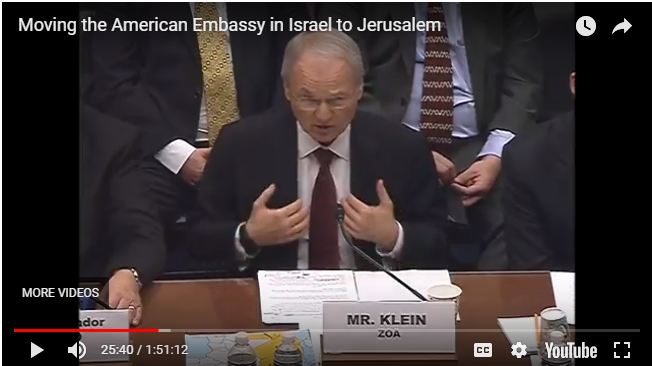 ZOA’s Klein, Dore Gold, Bolton Testify on Jerusalem Before Congress