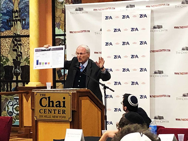 On April 11, 2019, the Chai Center of Dix Hills, New York, hosted a program entitled, “Antisemitism in America and the Deafening Silence,” featuring ZOA National President Morton Klein as the keynote speaker. Mr. Klein was met with a standing ovation – before he even uttered a word.