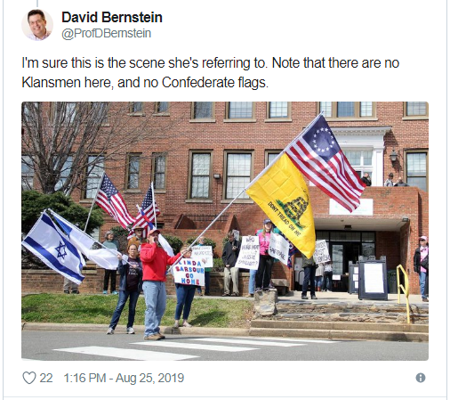 In March, an event Sarsour held was protested by a group of demonstrators holding American flags and Israeli flags. Sarsour–with no evidence–claimed that the protesters were flying Confederate flags and marching with KKK members.
