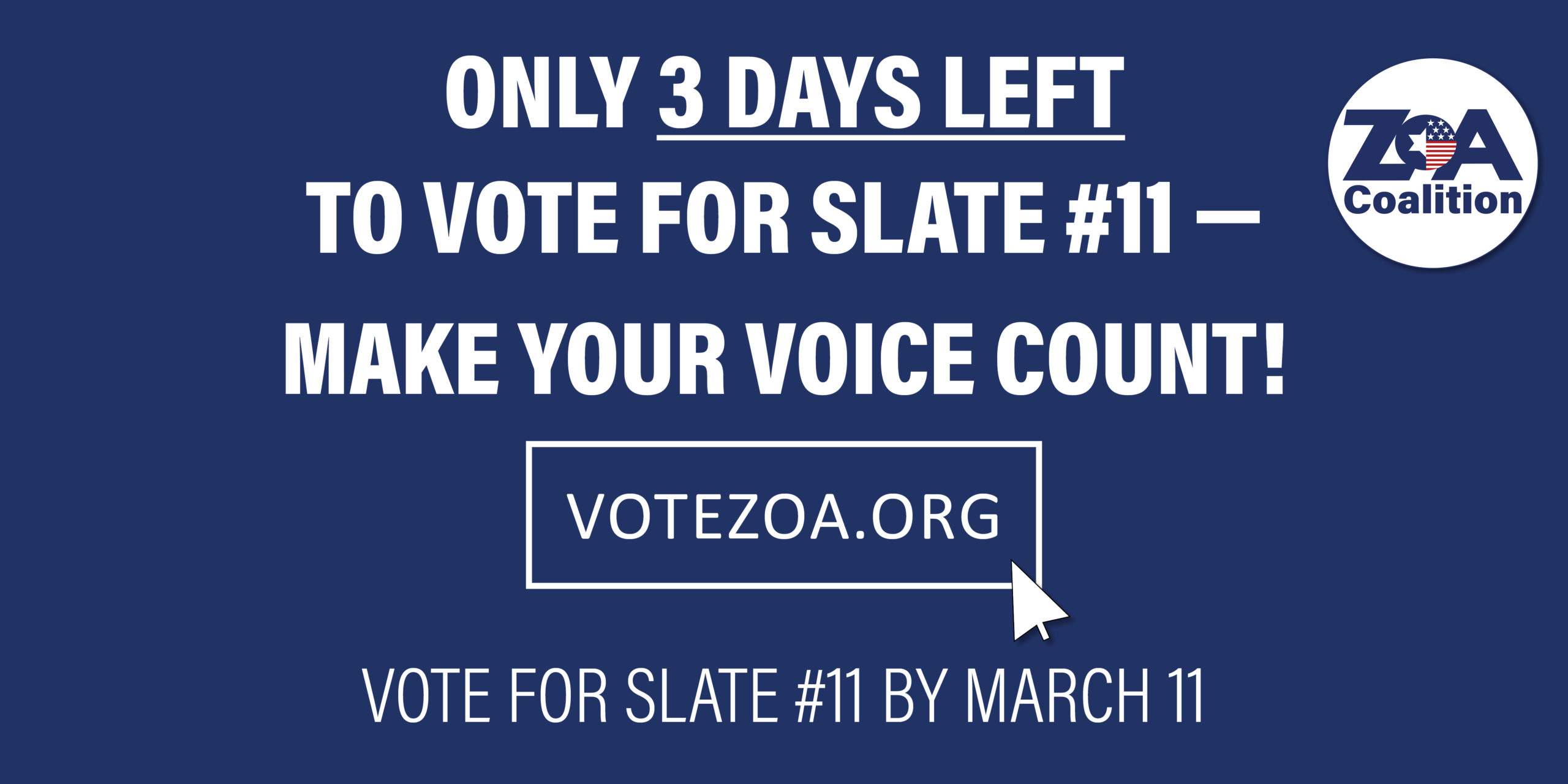1) The election is almost over! You have until Wednesday March 11th to cast your vote. The time to vote for the ZOA Coalition – the slate that puts the safety of the entire Jewish people first – is running out.