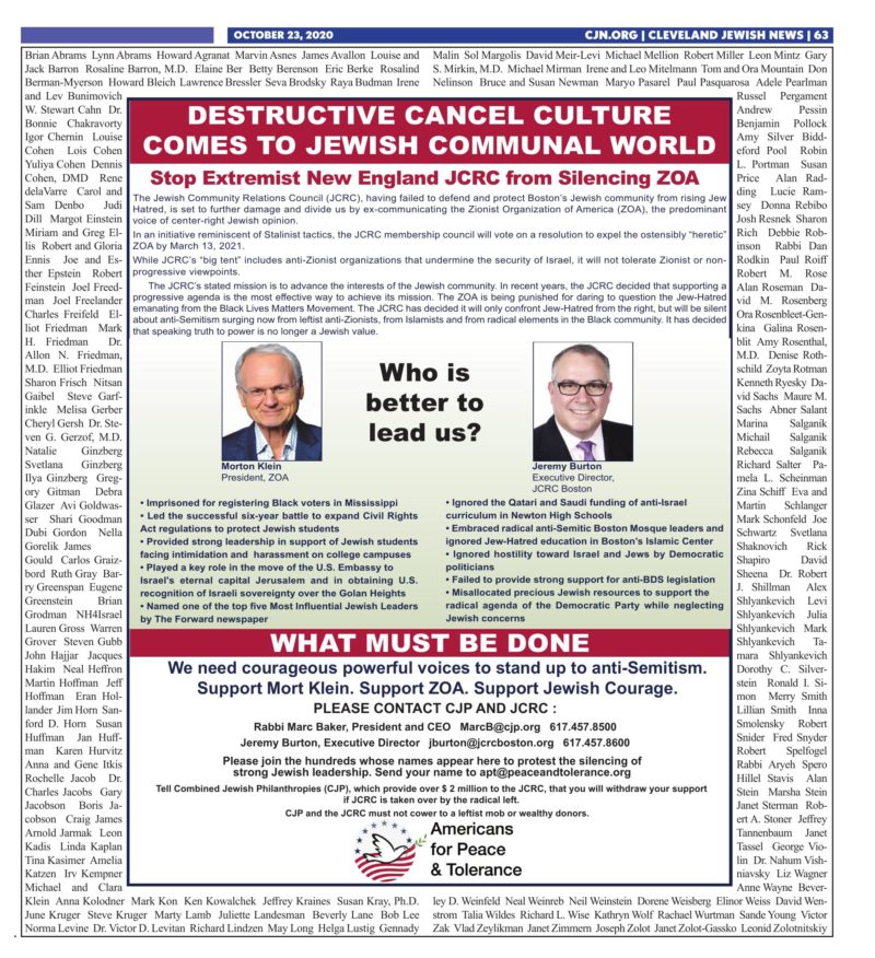 Papers Run Full Page Ad That Hundreds Signed Condemning Left Wing Attempt to Silence ZOA