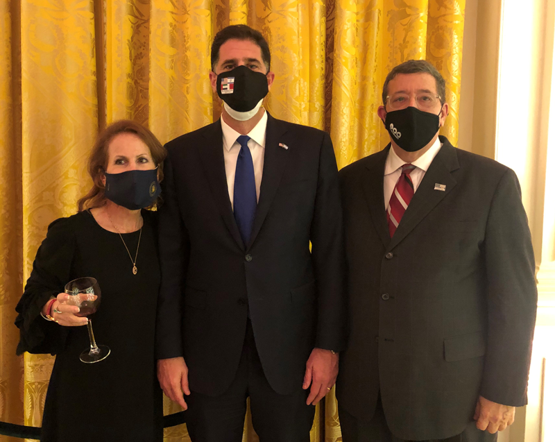The two parties were held indoors even as coronavirus cases have surged throughout the United States, leading many of those invited to refrain from attending. Footage from the receptions posted on social media showed guests wearing masks, but not always social distancing, particularly when they crowded toward the East Room stairs to listen to Trump speak.