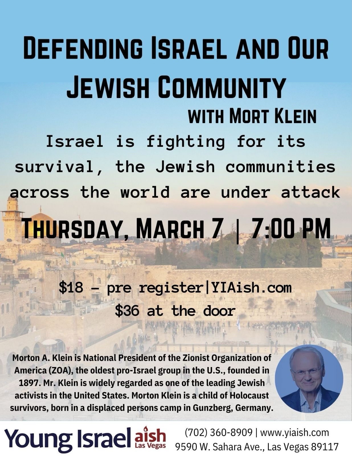 ZOA’s Mort Klein Will Speak in Vegas, March 7 at 7 PM, “Defending Israel and Our Jewish Community” – Join Us